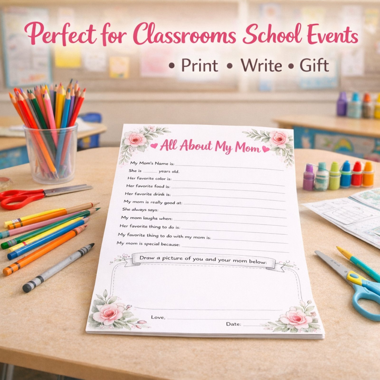 This “All About My Mom” printable bundle is the perfect Mother’s Day keepsake and activity for children to write about their favorite female caregivers.