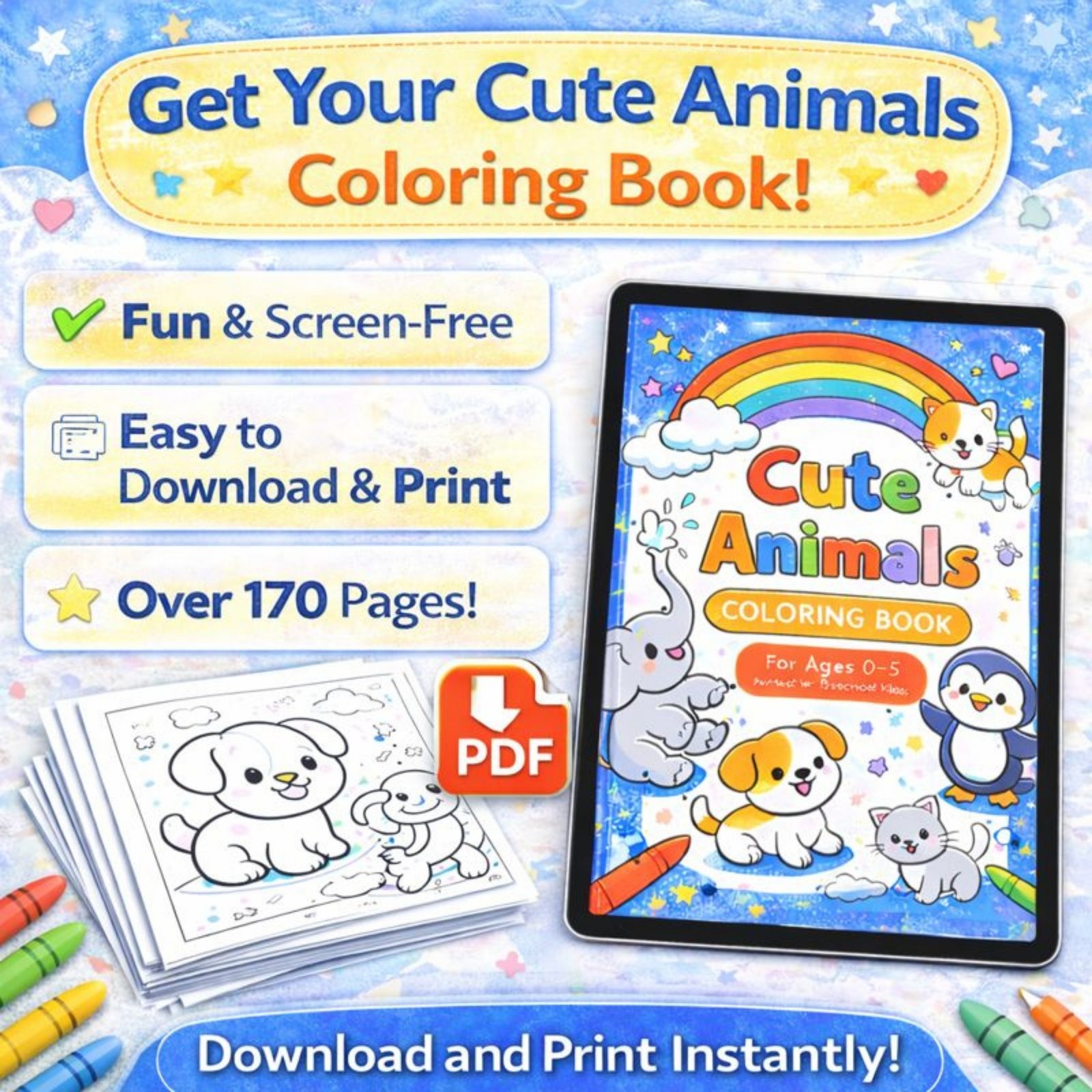Looking for a fun, educational, and screen-free activity for your child? This Cute Animals Coloring Book for Kids Ages 0–5 is the perfect printable learning resource for toddlers, preschoolers, and early learners.
