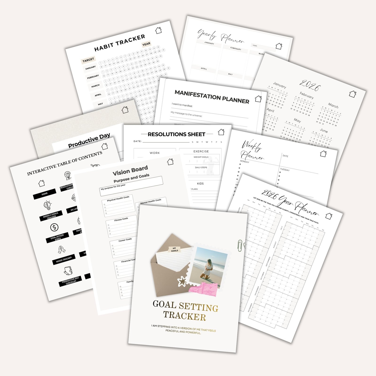 This planner also includes a complete goal-setting template and goal-setting worksheet pages to guide you through goal planning, habit building, and progress tracking. You can use these worksheets to set monthly priorities, plan weekly action steps, and stay aligned with your goals throughout the year. With this system, you will not just plan your goals; you will actually work toward them consistently.