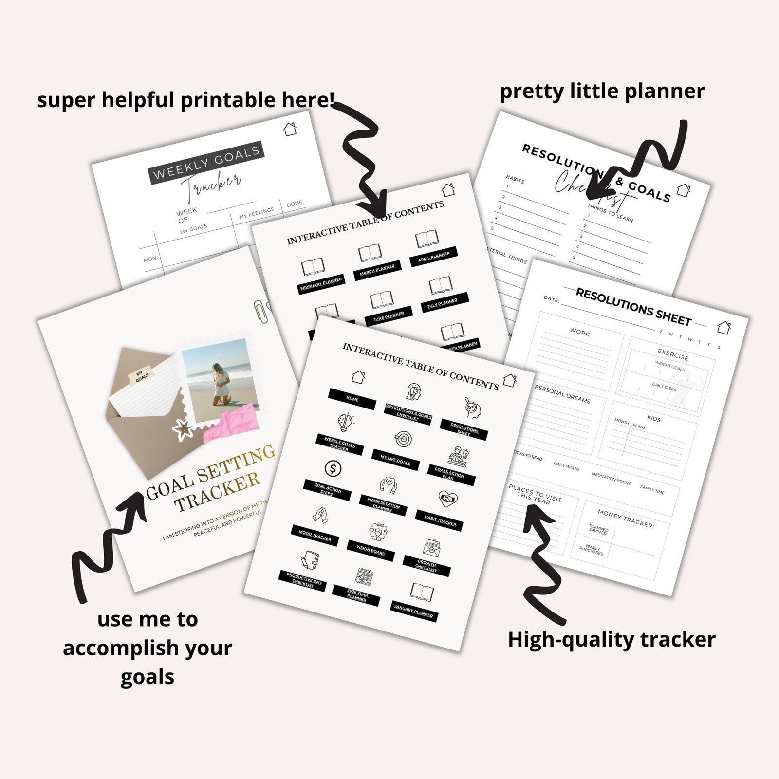 This 2026 planner includes a powerful SMART goals template to help you set goals that are specific, measurable, realistic, and time-based. Instead of writing vague goals that fade after a few weeks, you will use the included SMART goals worksheet to break your goals into clear action steps, define success, and track progress over time. This makes it perfect for personal growth, school, work, fitness, business, and wellness goals.